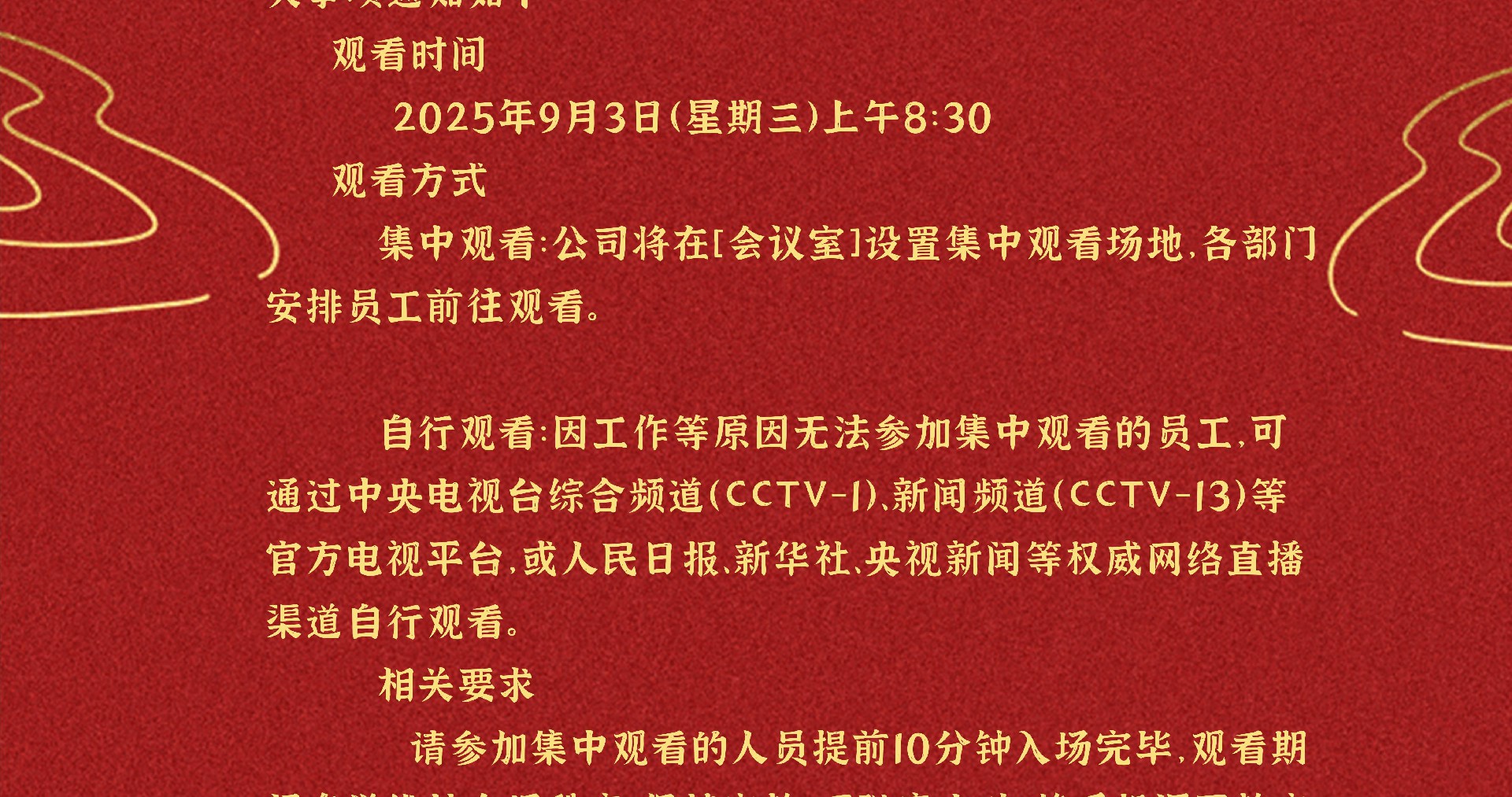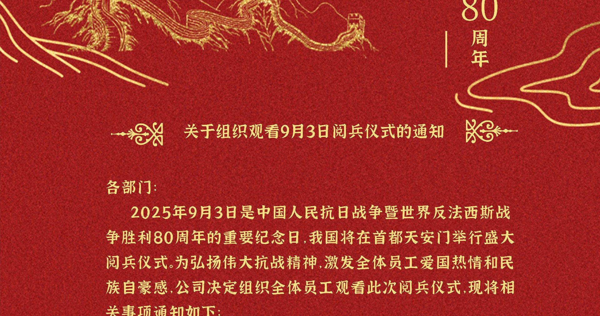 關(guān)于組織觀看9月3日閱兵儀式的通知